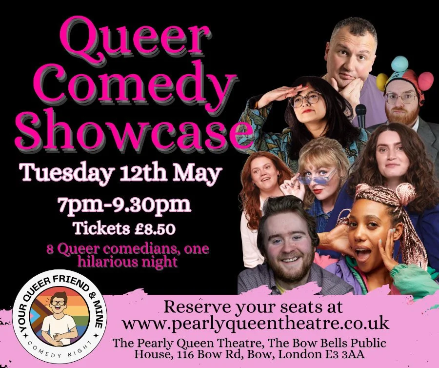 Hosted by the brilliant duo Nick Bain and Jack Scullion, the night features a stacked bill: Shalaka Kurup, Kate Cheka, Reb Day, Jonny Brace, Rhoni Cash, Daisy Roberts, James “Moss” Watkins, and Matt Lowes. Expect big laughs, unexpected turns, and a room full of queer joy.